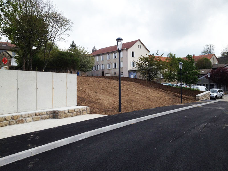 Nous effectuons des travaux de terrassement pleine masse (bâtiment, voierie, piste forestière), aménagements extérieurs, murs en gabion ou encore mur en enrochement.